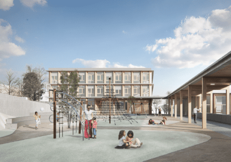 Borrweg Außenanlagen für ein Schulgebäude in Zürich, Schweiz – Der Entwurf der Außenanlagen vermittelt die starken topographischen Unterschiede des Grundstücks und re-organisiert und -programmiert den Außenraum mit neu gestalteten Spiel- und Nutzflächen.…