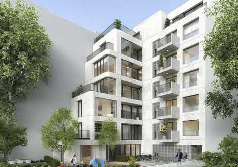 Bernauer 40 Neubau eines Gebäudes mit 22 Wohnungen, zwei Gewerbeeinheiten und Tiefgarage für 11 PKWs in der Bernauer Straße 40, Berlin – Der Gebäudeentwurf erfüllt die strikten Maßgaben bezüglich der Volumetrie und…